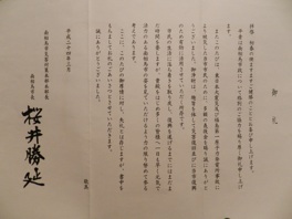 また、先日南相馬市から御礼状と義援金受領証明書が届きました!本当に皆様ご協力ありがとうございました。