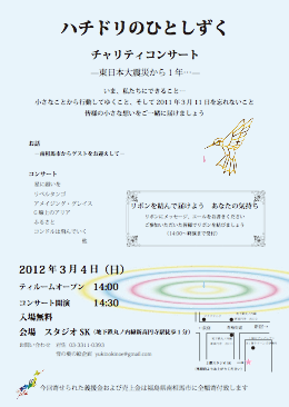 youtubeで「ハチドリのひとしずく 東日本大震災から1年」の検索でもご覧いただけます。